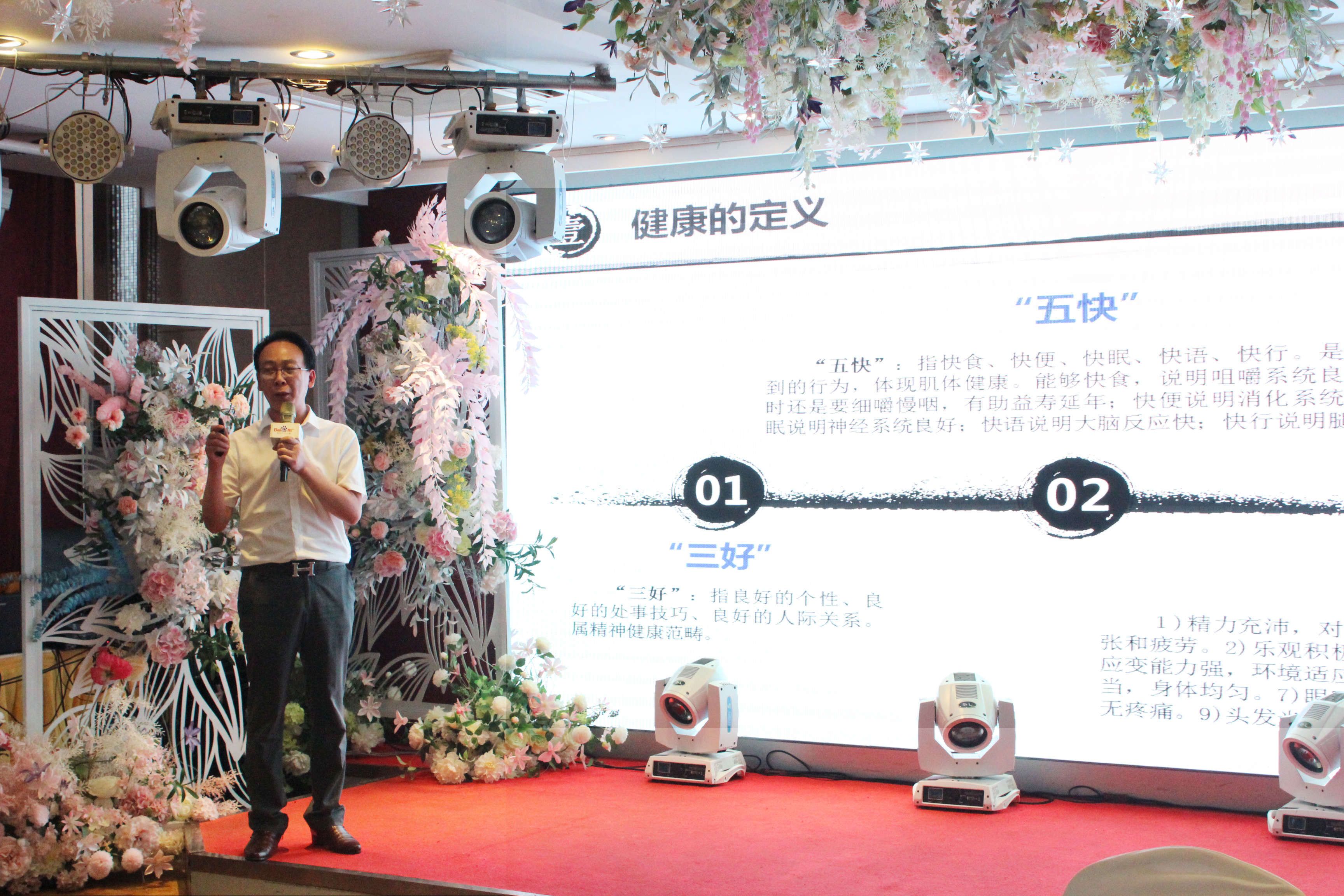 會議上,邀請到了南京太乙堂中醫(yī)院中醫(yī)科主任梁世界與大家分享中醫(yī)養(yǎng)生的知識。梁主任現(xiàn)場和大家分享當代對“健康”的定義,并介紹了影響健康的個人因素、中醫(yī)的養(yǎng)生理念,日常生活中如何養(yǎng)生保健。到健康提問環(huán)節(jié)時,大家都積極提問,梁主任一一作答。